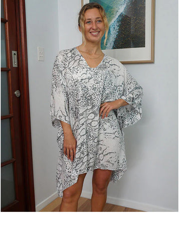Rayon tunic to relax around the pool or beach, easy slip on over bathers or with pants.