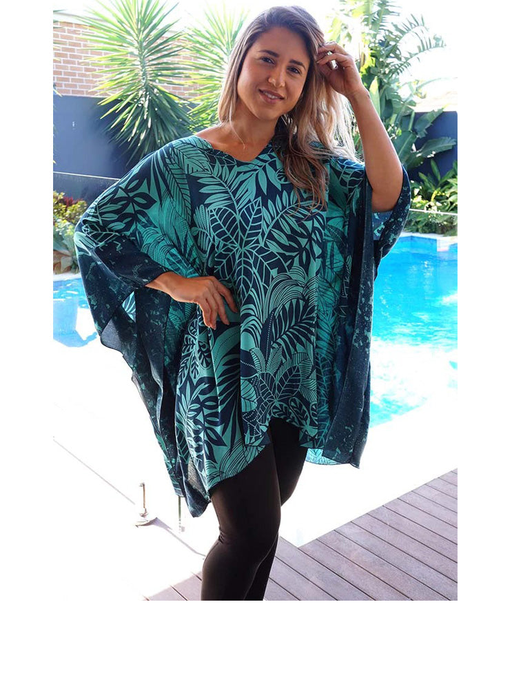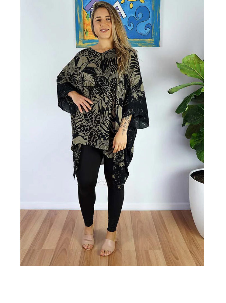 100% rayon tunic, breathable and soft, relaxing at beach, around the pool, comfortable and smart, suits all body shapes. Overall width 96cm, length 91cm.