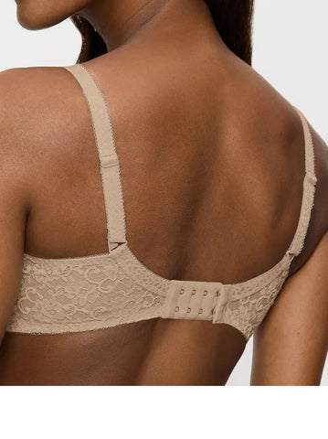 Premium fabrics, soft touch, wireless minimiser reduces the bust. Bonded and laminated parts with a seamless cup, lace trims. Soft elastic straps. Lace U back. 15% Polyamide, 25% Elastane.