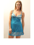 This beautiful chemise from Bassoni in aqua lace features over a white satin fabric for a touch of femininity. The shoulder straps are adjustable, a border of lace finishes this vibrant chemise.